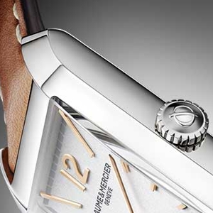 With the Hampton range, Baume and Mercier offer a unique style of timepiece that breaks away from the traditional round case design. Combining straight lines and subtle curves, the Hampton is available for both ladies and gents in three case sizes. Highly polished on all facets, the Hampton case blends effortlessly into the curvature of the lugs giving a seamless transition into the strap or bracelet option on the ladies models.