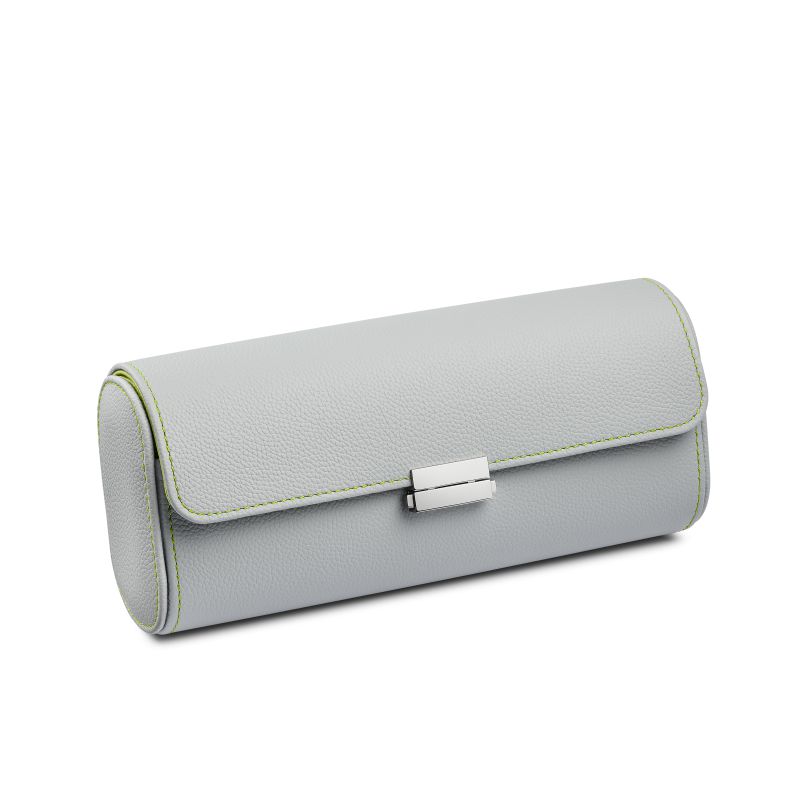 Expertly, 100% handmade in Italy, the Pochette range from Scatola Del Tempo are a masterclass in luxury and quality. The softest grey calf skin leather with a subtle grain complimented with green stitching and green calf skin leather interior. The soft leather pillow will comfortably accommodate 3 watches or 4 smaller cased watches. The Pochette is supplied with 3 removable leather dividers. The case is secured using a chrome double pusher clasp.