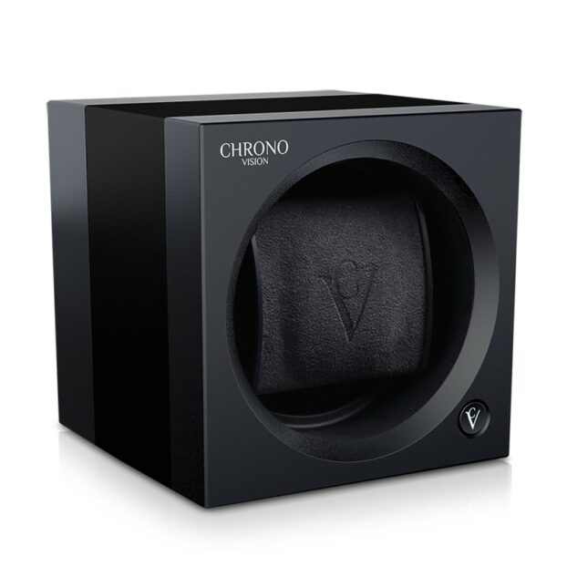 One of the Finest Single Watch Winders available – The Chronovision One finished in Black Silk with Anodised Black Aluminium highlights.